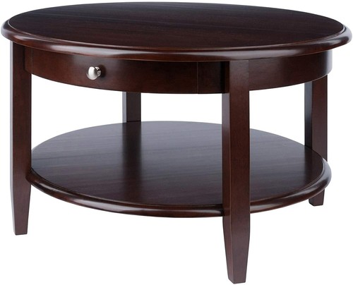 Solid Wood Classic Round Coffee Table W Drawer Living Room Furniture Dark Brown Ebay
